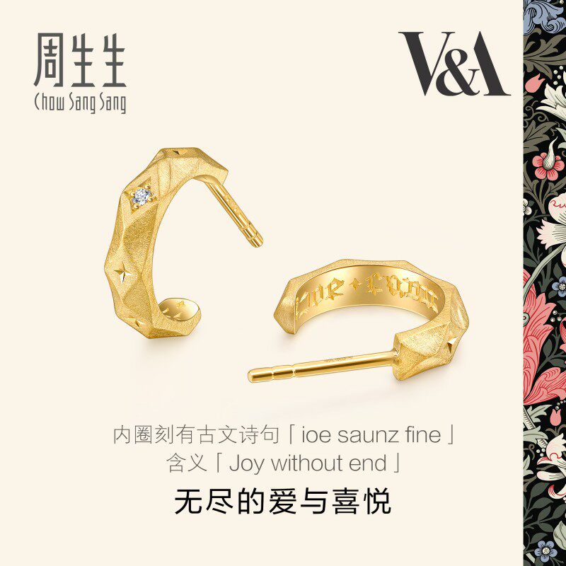 周生生18K黄色黄金V&A博物馆系列钻石情诗耳钉93126E