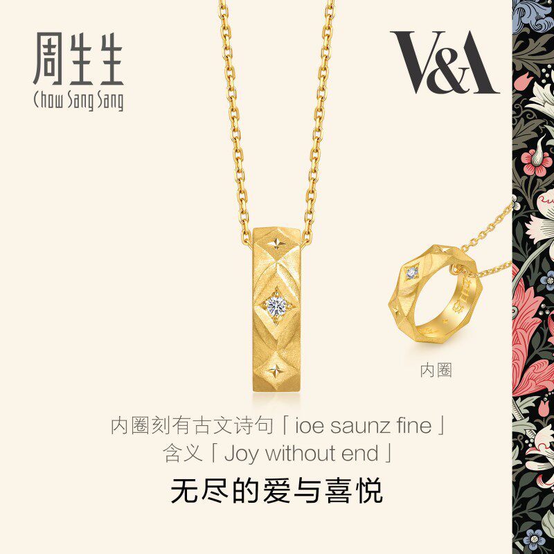 周生生18K黄色黄金V&A博物馆联名系列钻石情诗项链93126N