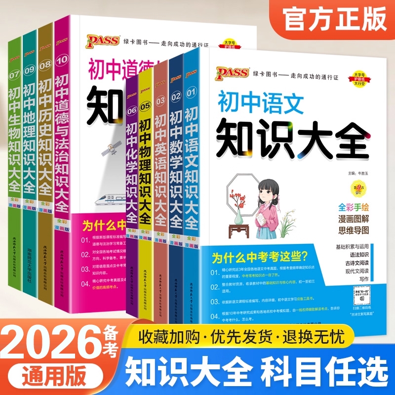 2026备考绿卡pass初中数学知识大全初三语文英语物理化学生物历史地理道德与法治基础知识手册大全中考总复习资料书高中重点名师