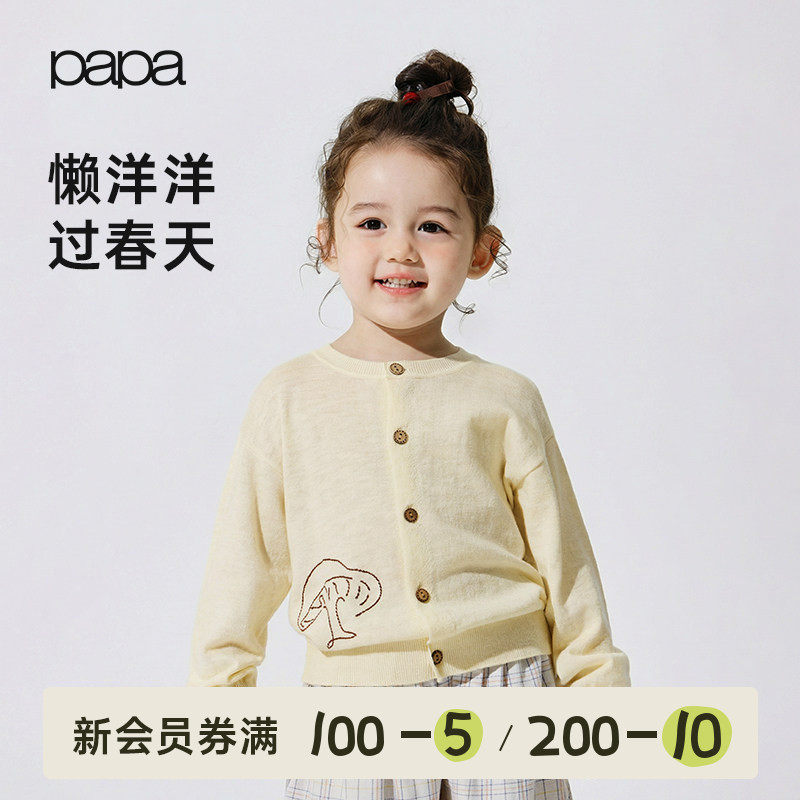 【新品】papa爬爬春季儿童毛衣针织开衫男女童纯棉百搭长袖上衣