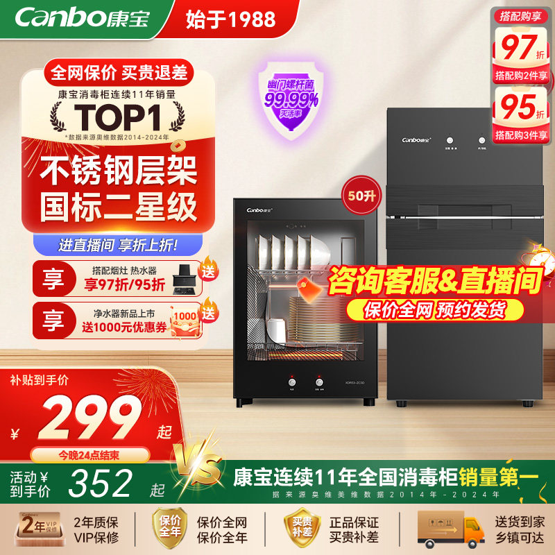 康宝消毒柜家用小型台式立式碗柜厨房餐具碗筷收纳烘干一体大品牌