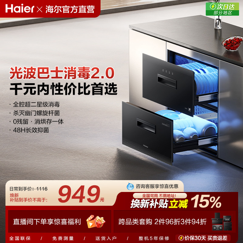 [以旧换新补贴]海尔麦浪灭菌舱130消毒柜嵌入式烘干一体厨房家用