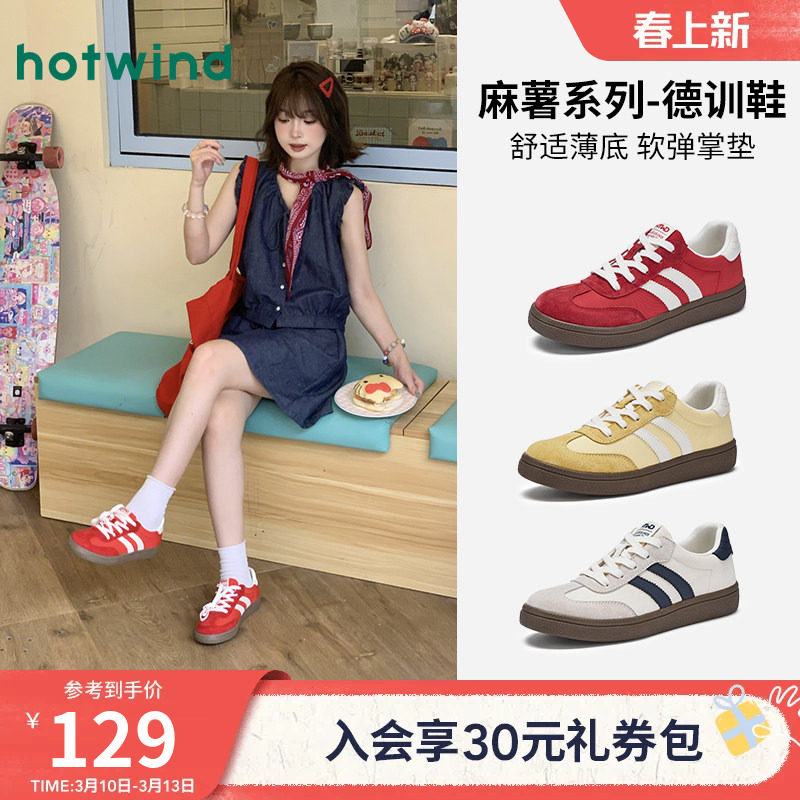 热风麻薯红色德训鞋女款2026年春季新款爆款休闲鞋软底新年女鞋子