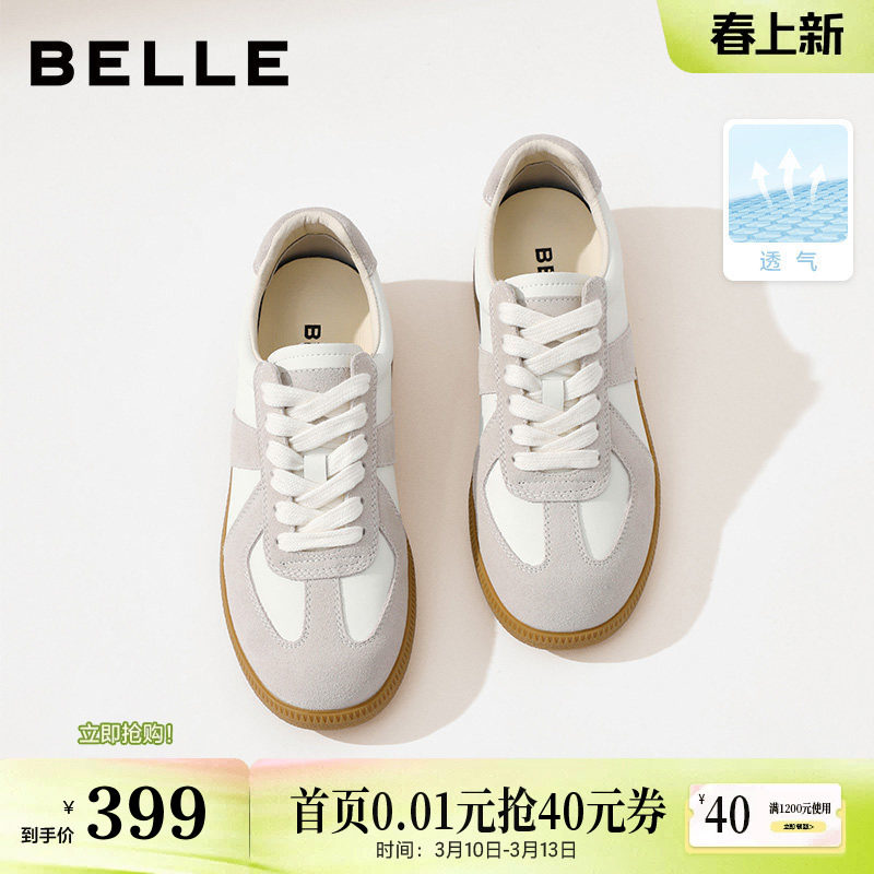 张凌赫同款百丽女鞋散文诗芭蕾德训鞋休闲新款网面小白鞋B0992预