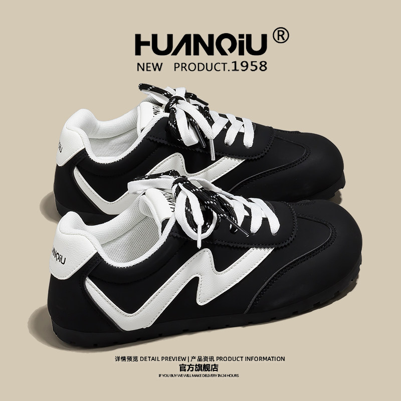熊猫户外春季新年时尚百搭拼色双鞋带德训阿甘鞋休闲潮流运动鞋女