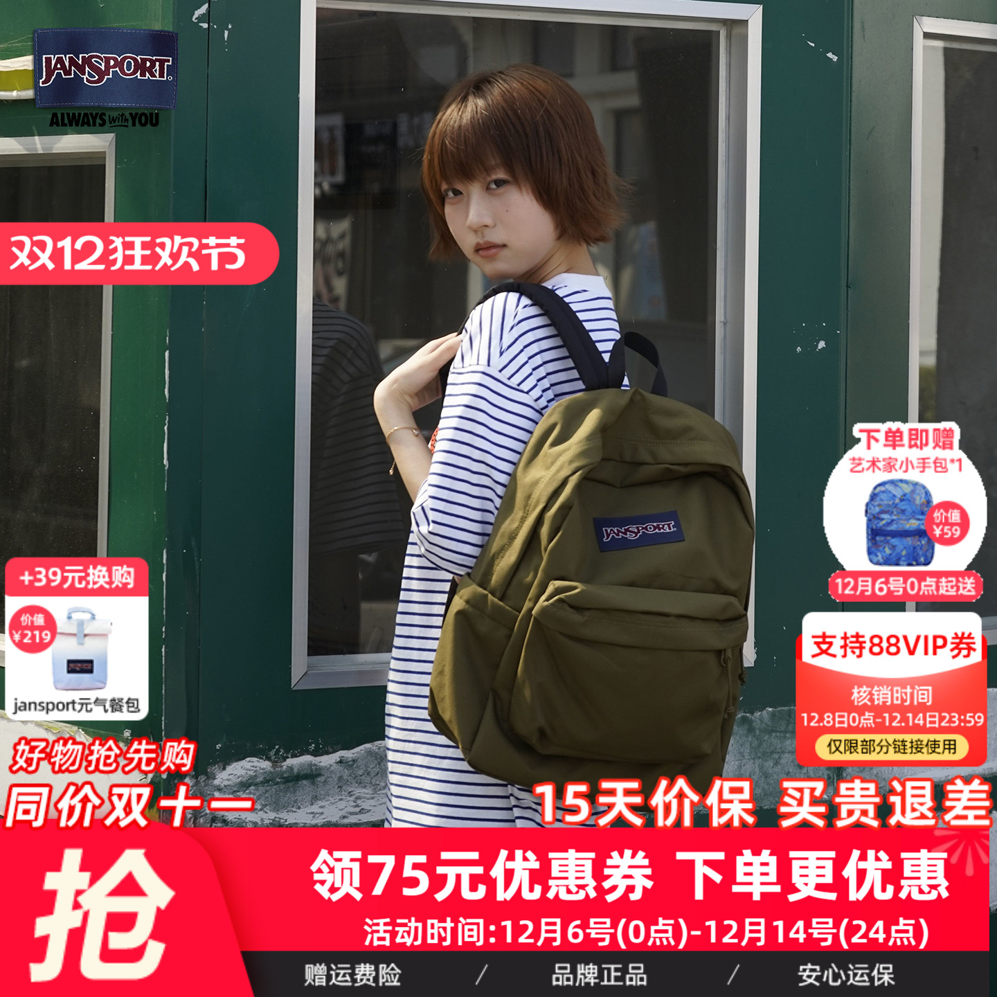 JanSport双肩包电脑包女高中大学生男工装书包百搭泰奶绿军绿4QUE