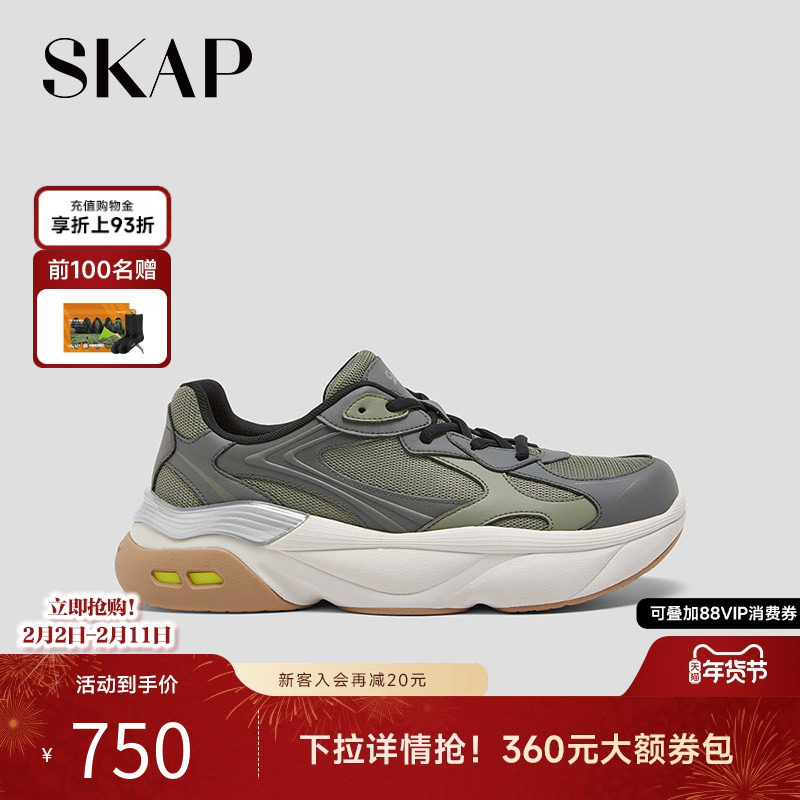 SKAP圣伽步男鞋2026春季新款老爹鞋轻便运动鞋透气网布男款休闲鞋