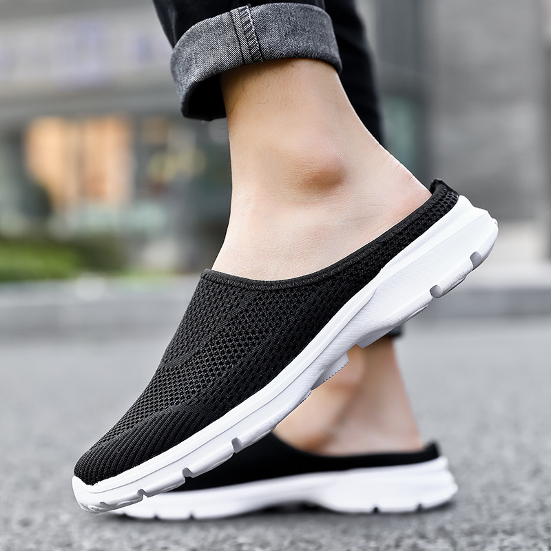 网布半拖鞋夏季休闲透气男鞋懒人特大码48男潮鞋一脚蹬半托无后跟