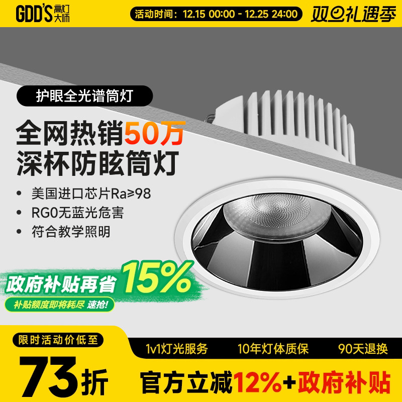 【国补】筒灯深杯防眩嵌入式透镜led超薄无主灯智能护眼厨房客厅