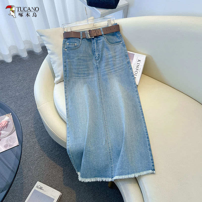 啄木鸟春夏季牛仔半身裙女高腰显瘦a字直筒裙薄款中长款包臀裙子