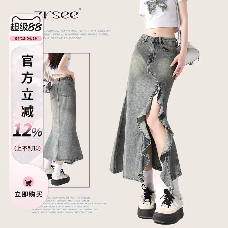 牛仔裙半身裙女2026新款春秋高腰a字开叉长裙复古包臀小个子半裙