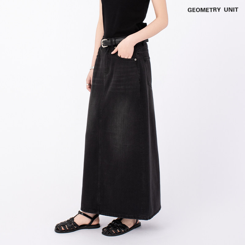 pusumede黑色复古牛仔裙半身裙女高腰裙裤设计感小众a字包臀短裙