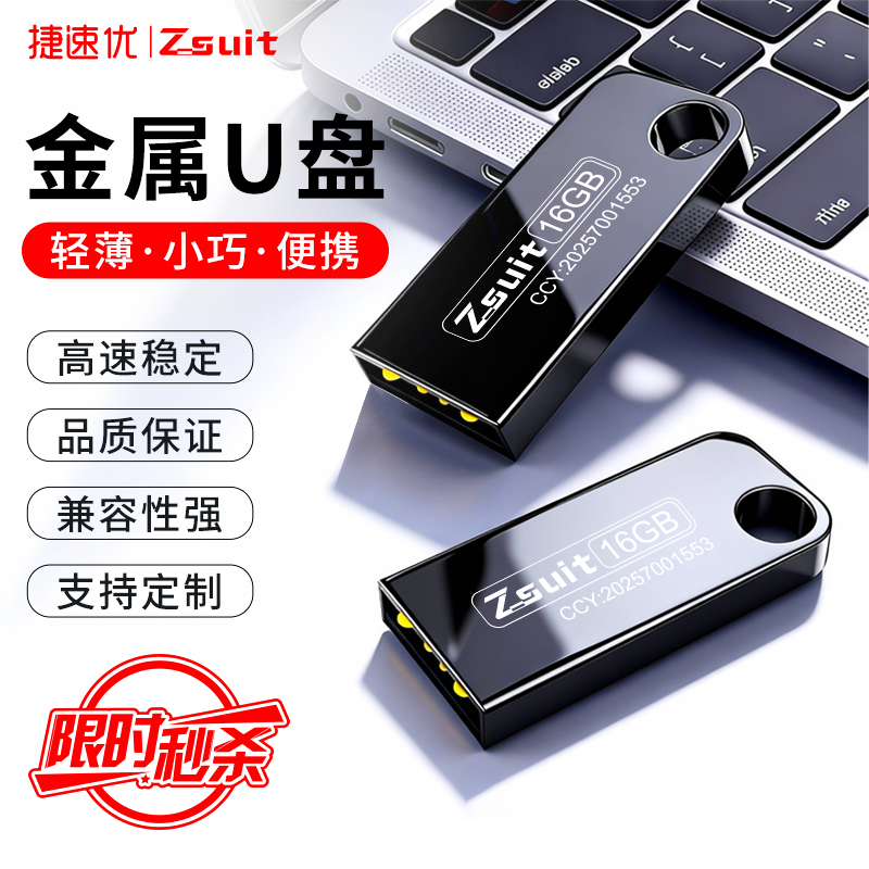 捷速优官方正品u盘定制刻字usb手指可插音响电脑办公金属优盘16G