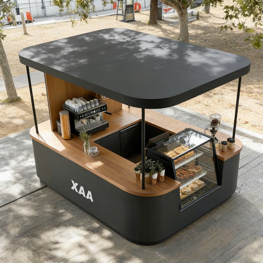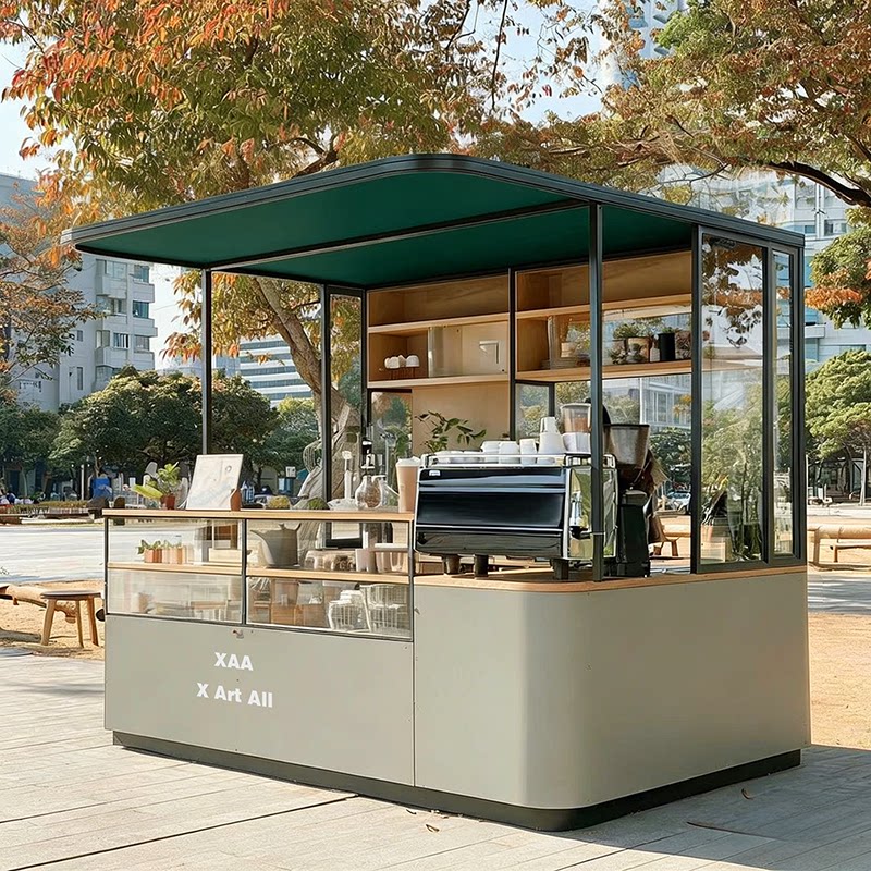 现代简约户外移动咖啡售卖亭商用展示柜透明玻璃售货亭休闲小吃车