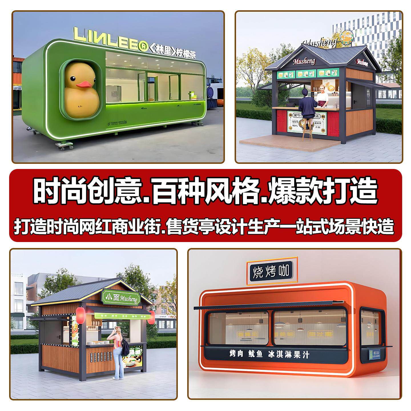 户外售货亭小吃街夜市风景区商业街网红集装箱摆摊移动商铺售卖定