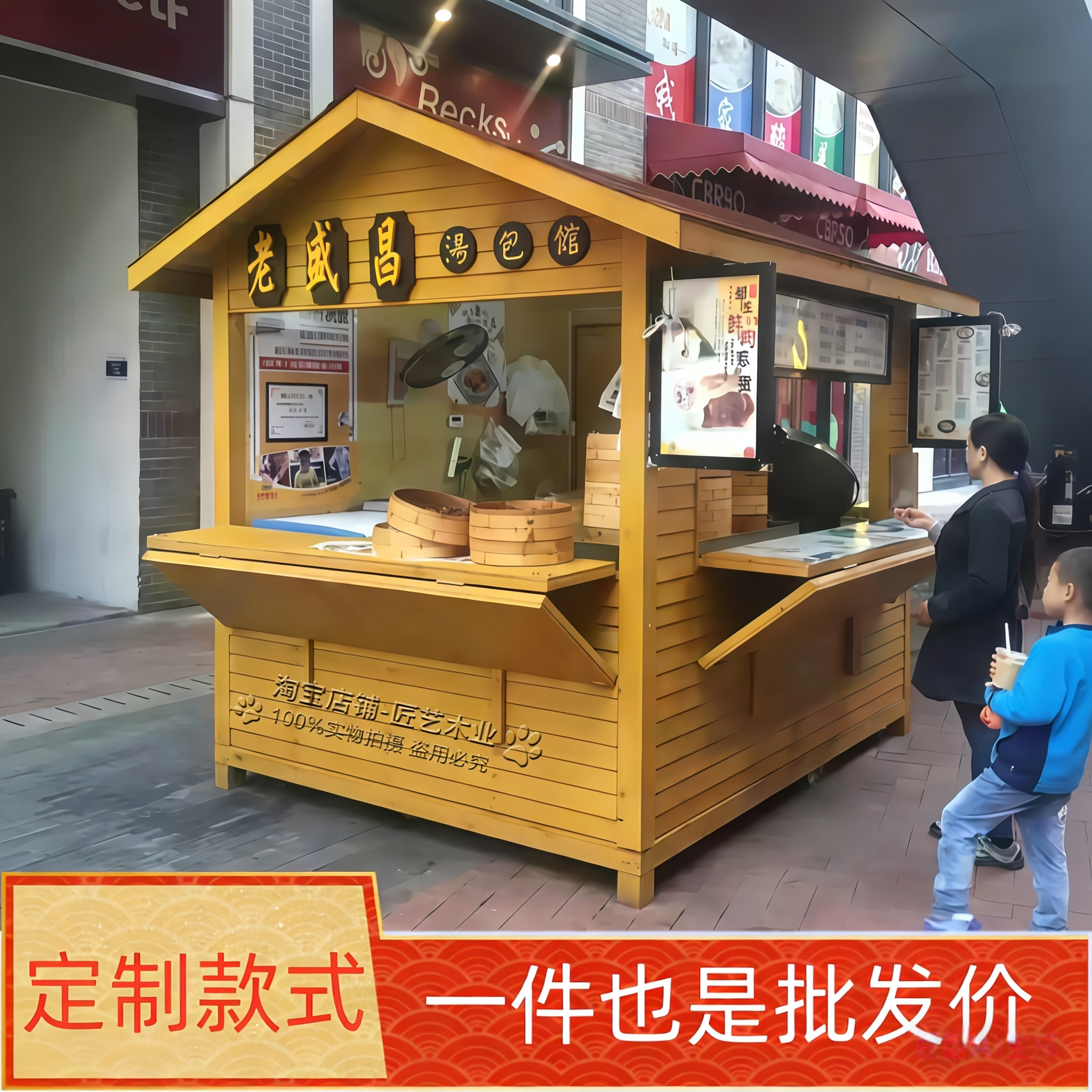 定制户外售货亭商业街广场移动售卖亭景区售票亭奶茶屋防腐木木屋