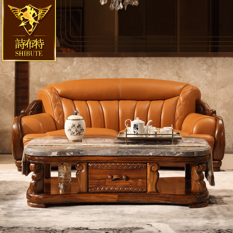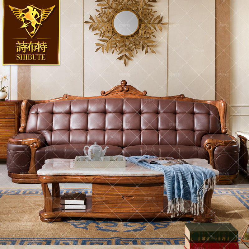 诗布特乌金木沙发 欧式头层真皮沙发别墅会所沙发小户型组合沙发