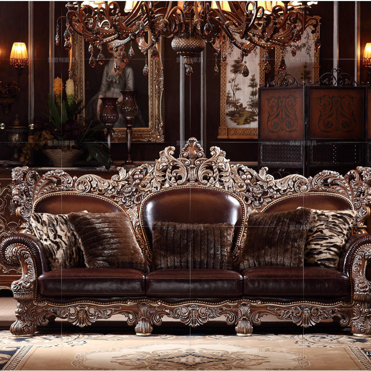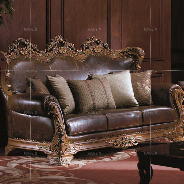 美式实木沙发 真皮沙发 欧式沙发 实木雕花沙发 古典实木沙发