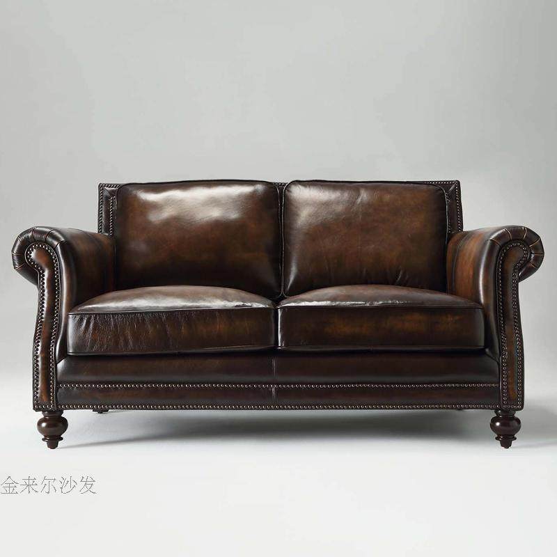 皮艺客厅沙发欧式简约办公接待店铺小户型复古油蜡皮直排两三人位