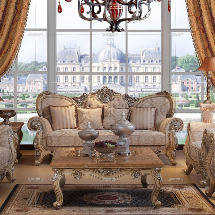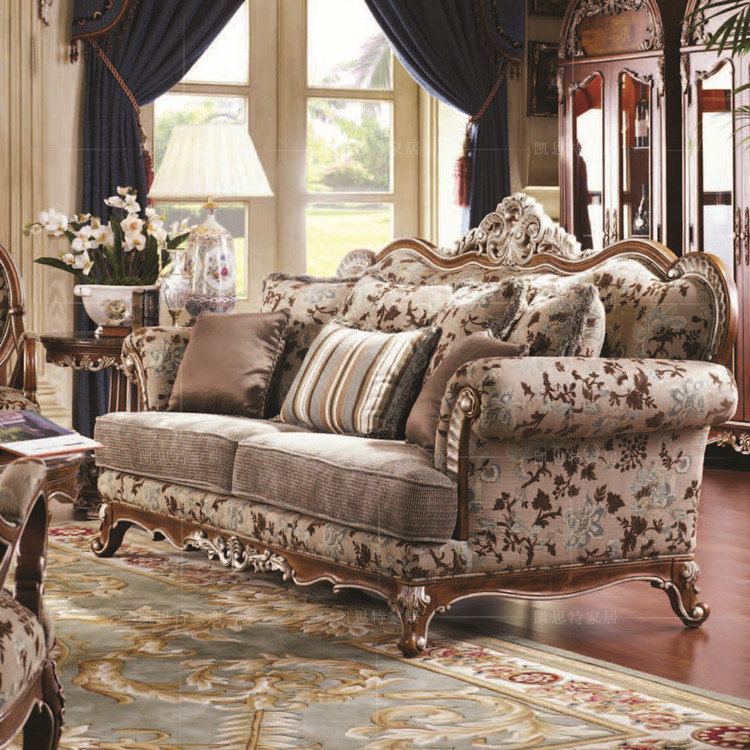 实木雕花沙发 进口布艺沙发 美式实木沙发 欧式沙发 法式描银沙发