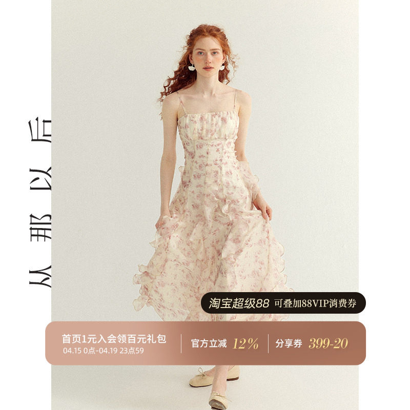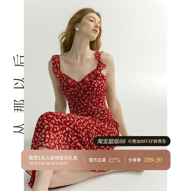 从那以后碎花吊带裙海边度假穿搭连衣裙红色裙子法式高级感长裙女