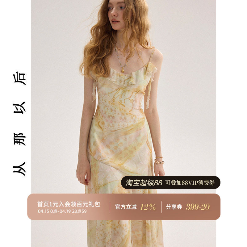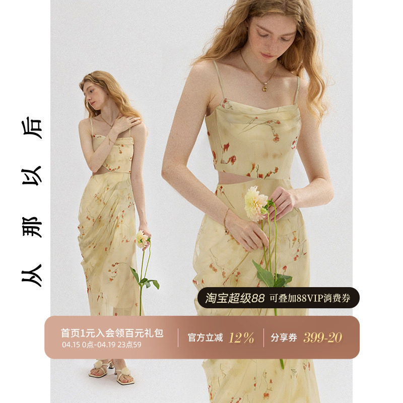 从那以后碎花连衣裙法式吊带裙海岛长裙高级感黄色裙子海边度假女