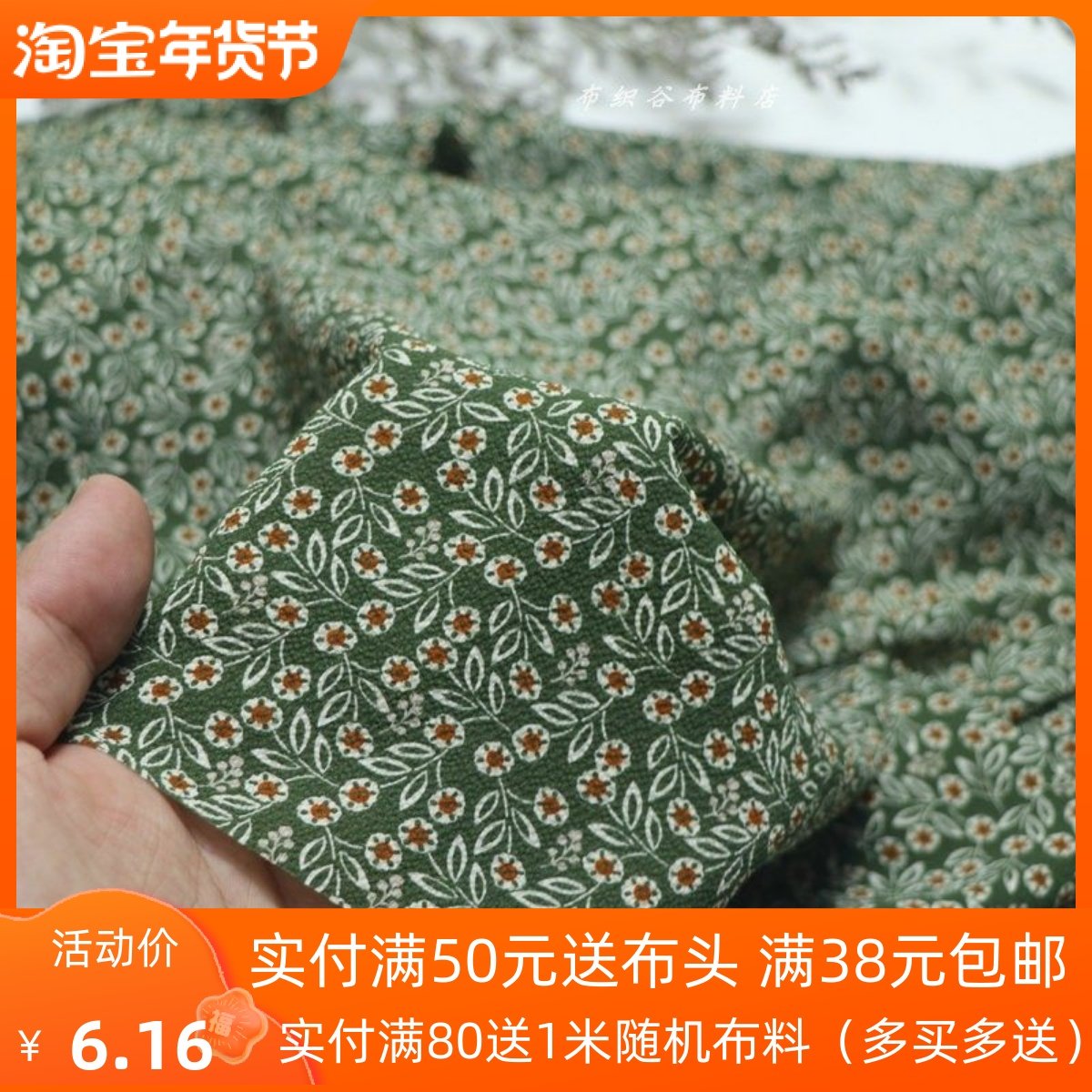 日单复古绿橘碎花枝不透雪纺珠面料日韩夏季衬衣连衣裙子服装面料
