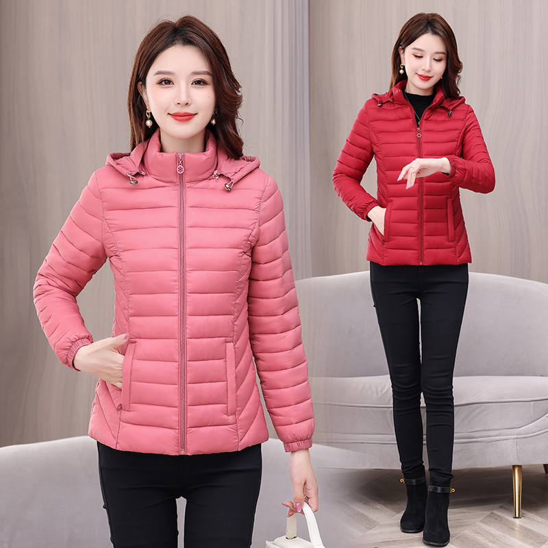 秋冬棉衣女短款带帽时尚修身洋气轻薄羽绒棉服妈妈轻薄保暖小棉袄