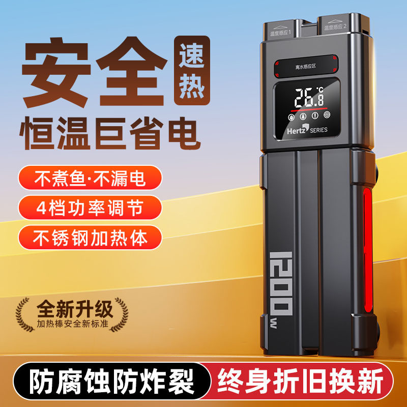 老渔匠智能双显鱼缸加热棒变频省电加热器自动恒温加温棒精准控温