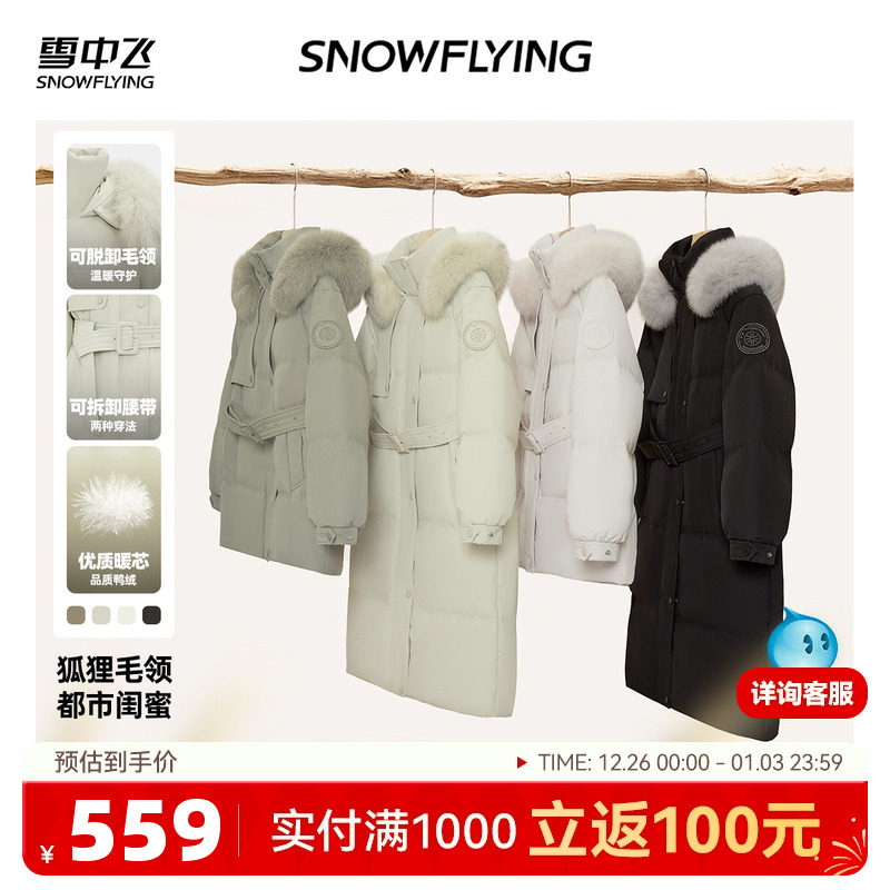 雪中飞2025冬新款女士中长款羽绒服狐狸毛领高品质时尚保暖温柔