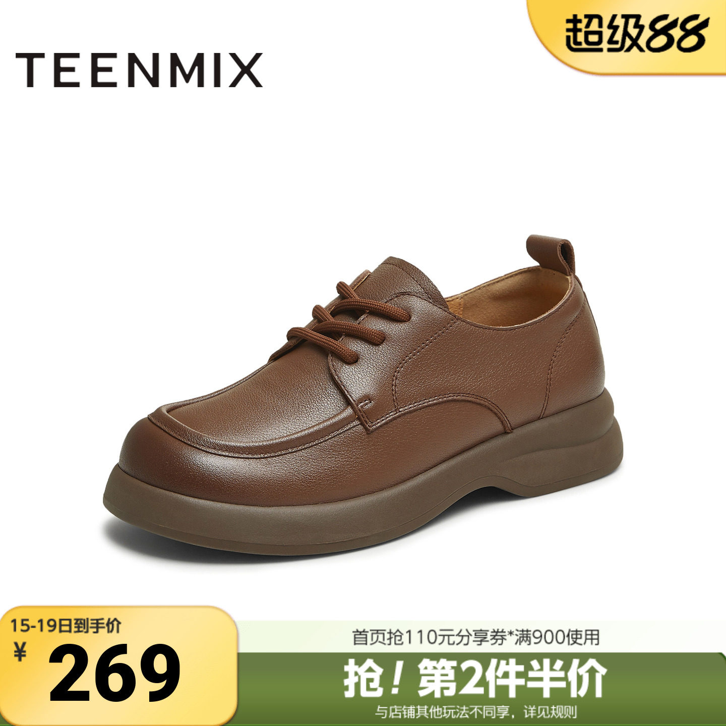 天美意春新款厚底圆头牛津鞋复古英伦小皮鞋女单鞋KY018CM5