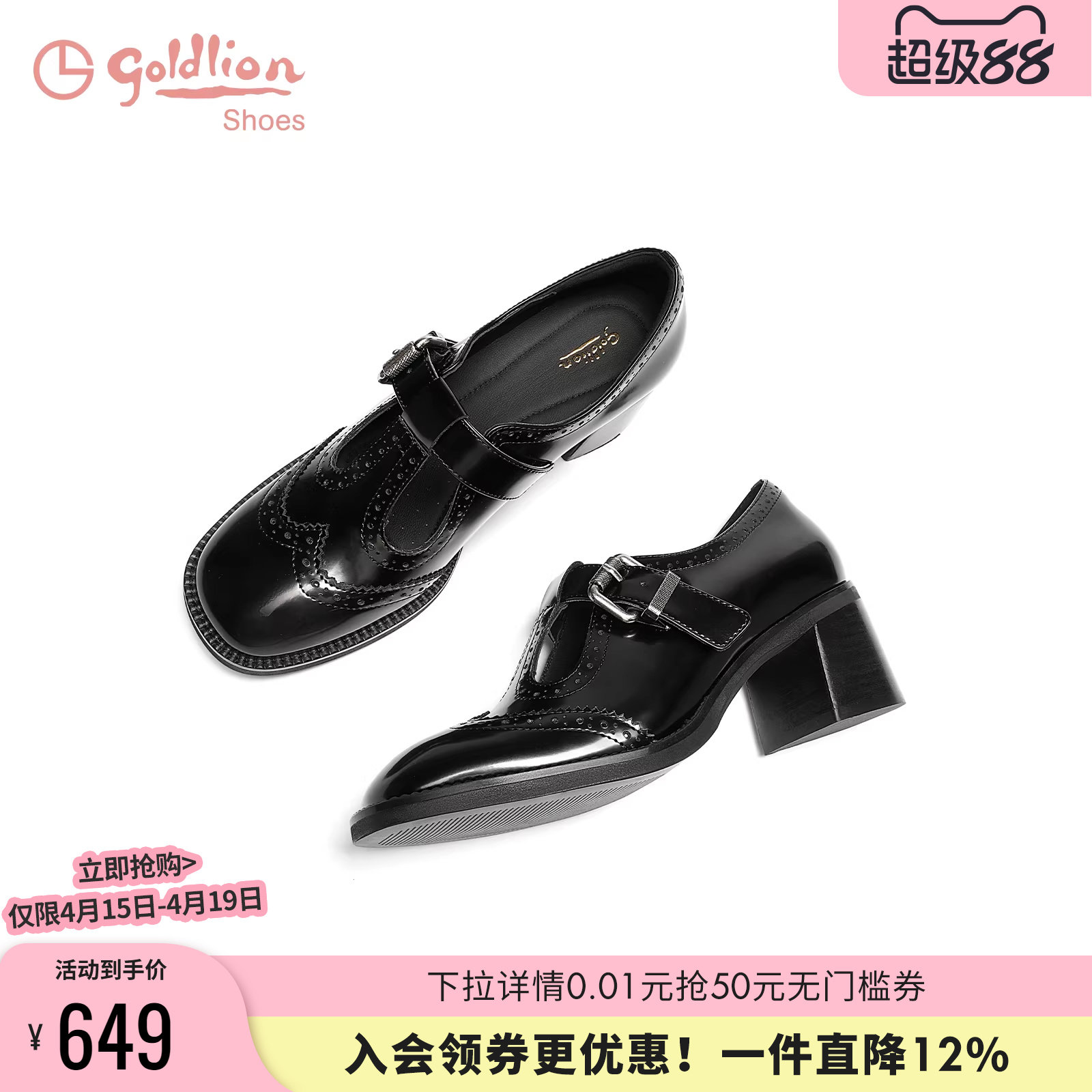 金利来女鞋2025秋季新款英伦布洛克小皮鞋圆头百搭粗跟玛丽珍鞋女