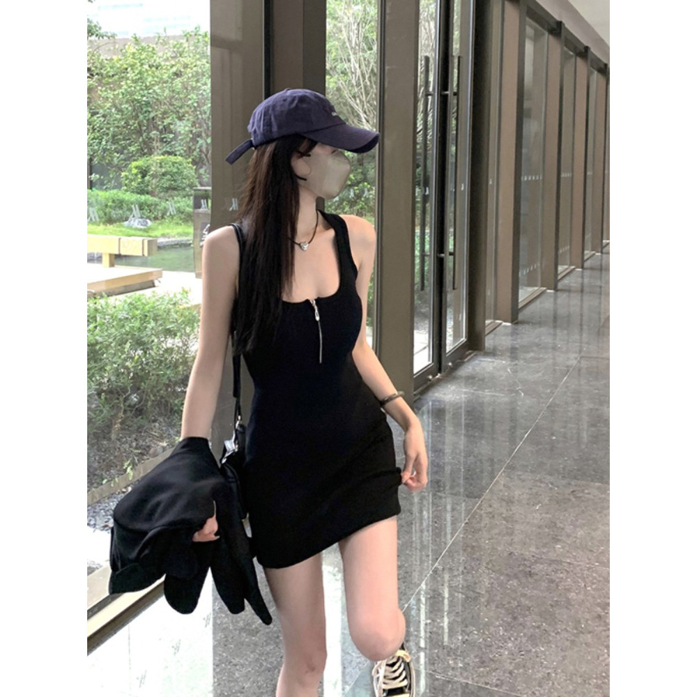 挂脖吊带连衣裙女春夏2025新款韩版V领气质辣妹性感开叉包臀长裙