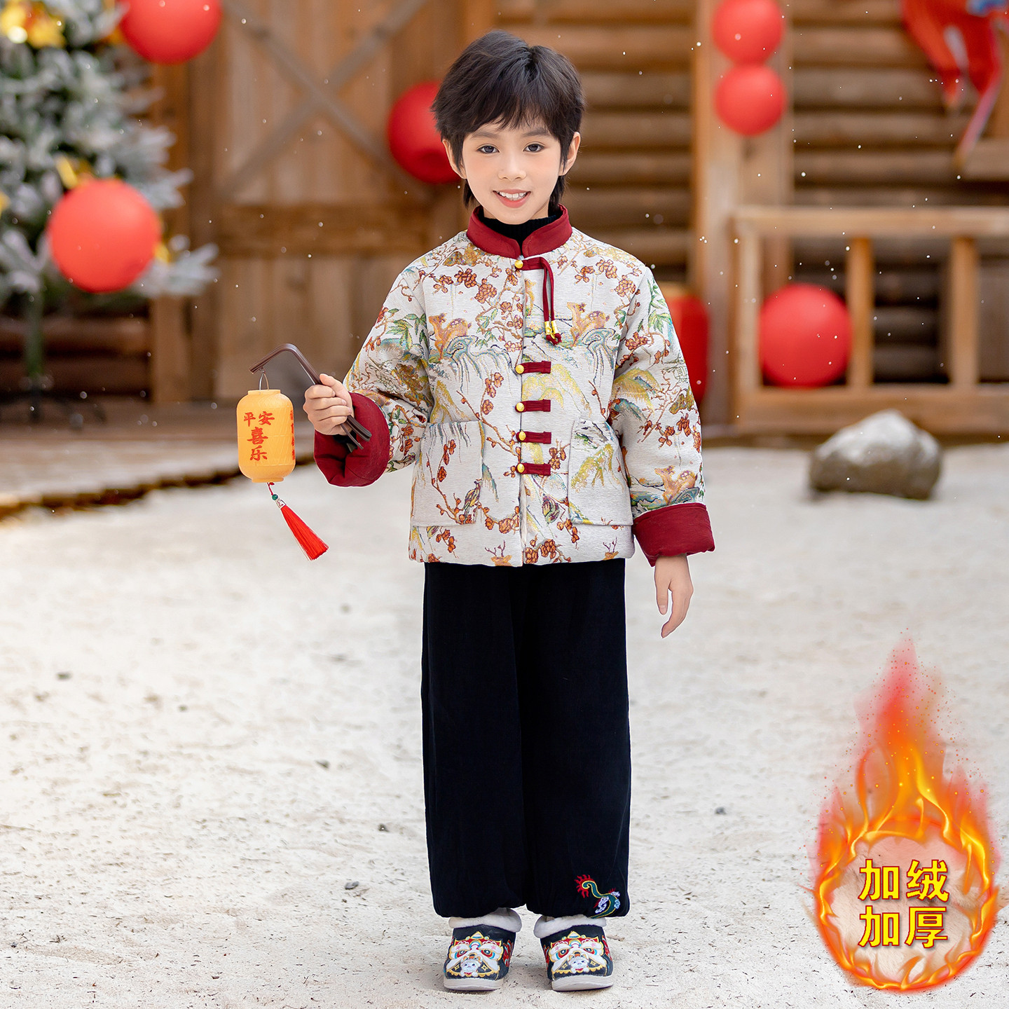 拜年服男童汉服冬装2026新款儿童唐装加厚过年衣服宝宝新年装棉服