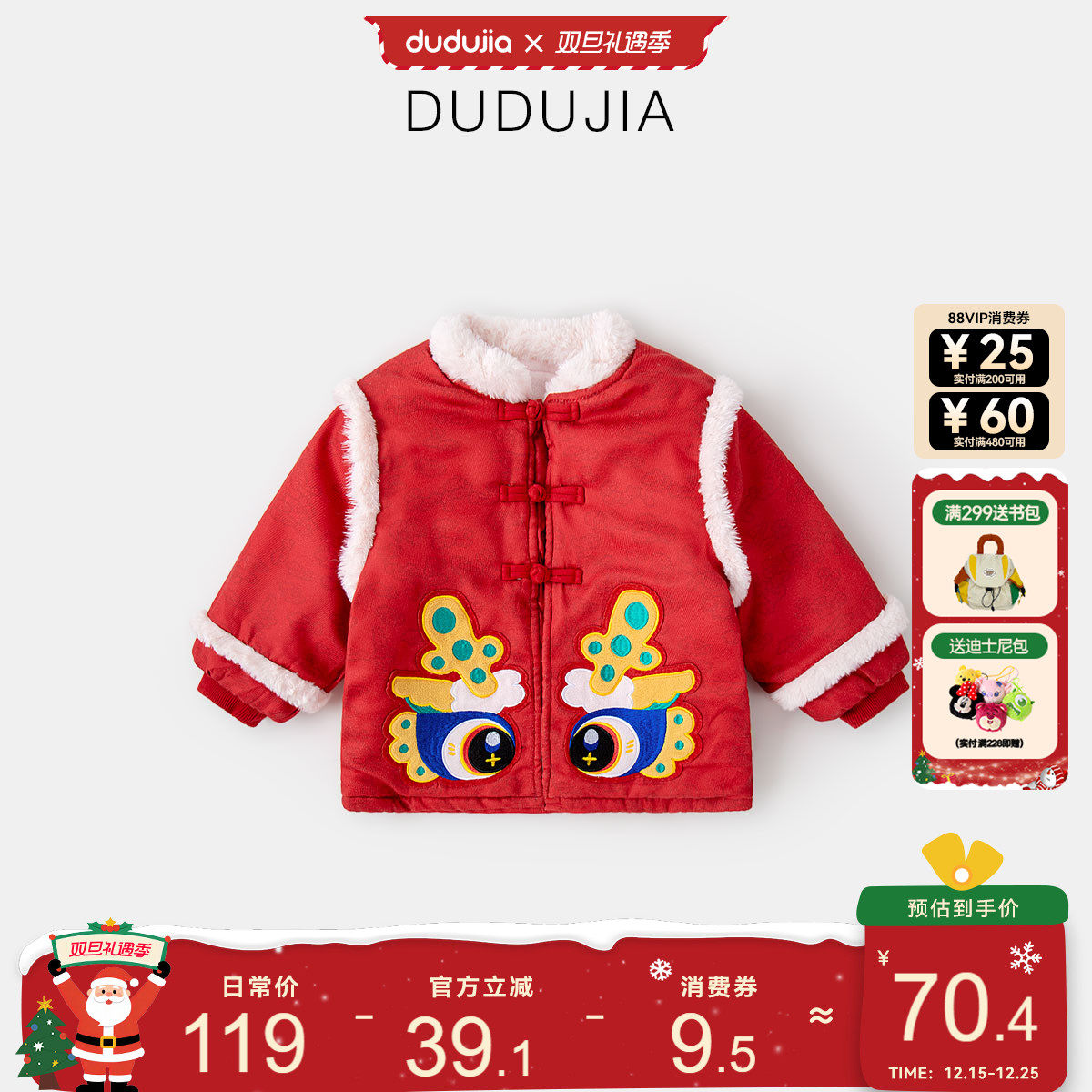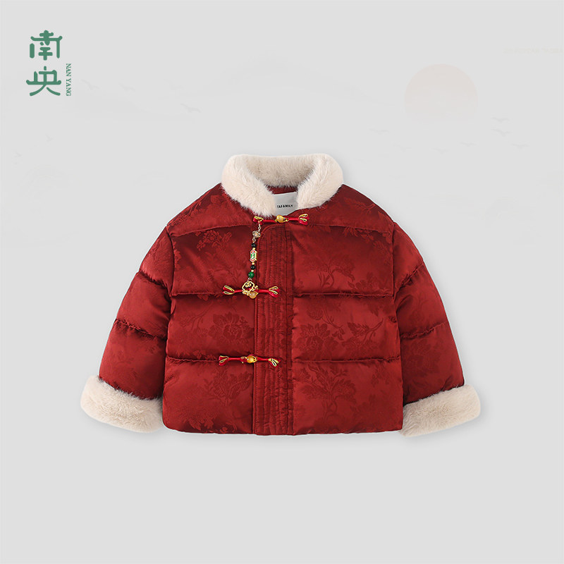 嘟嘟家儿童拜年服外套冬季男童红色喜庆过年服女童唐装宝宝新年装