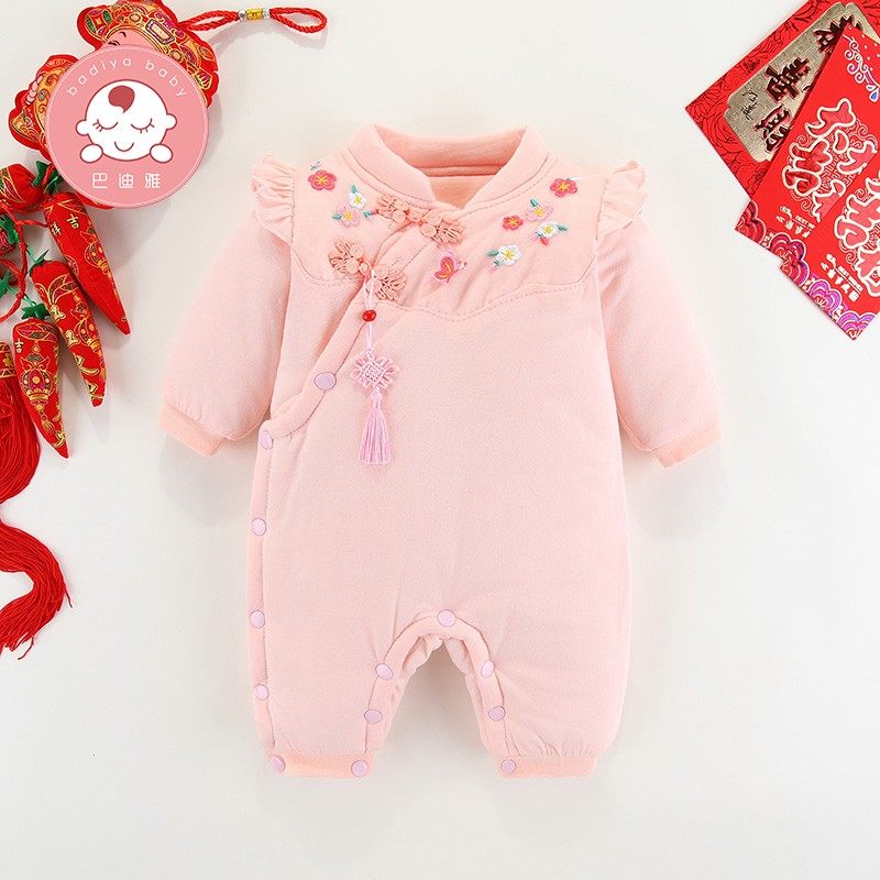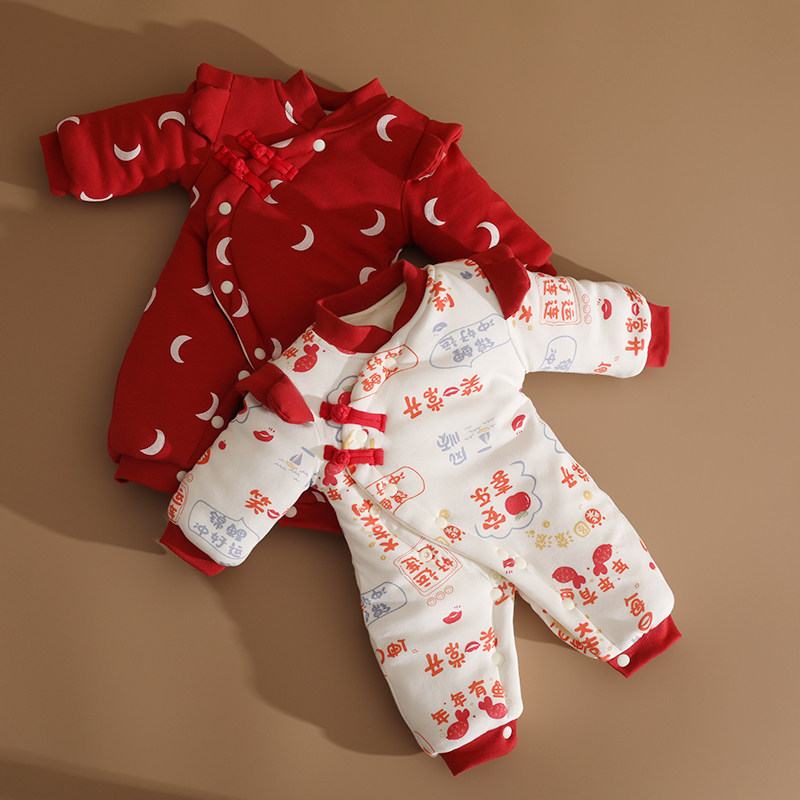 新生儿连体衣冬款夹棉加厚拜年服宝宝新年装棉服满月保暖过年衣服
