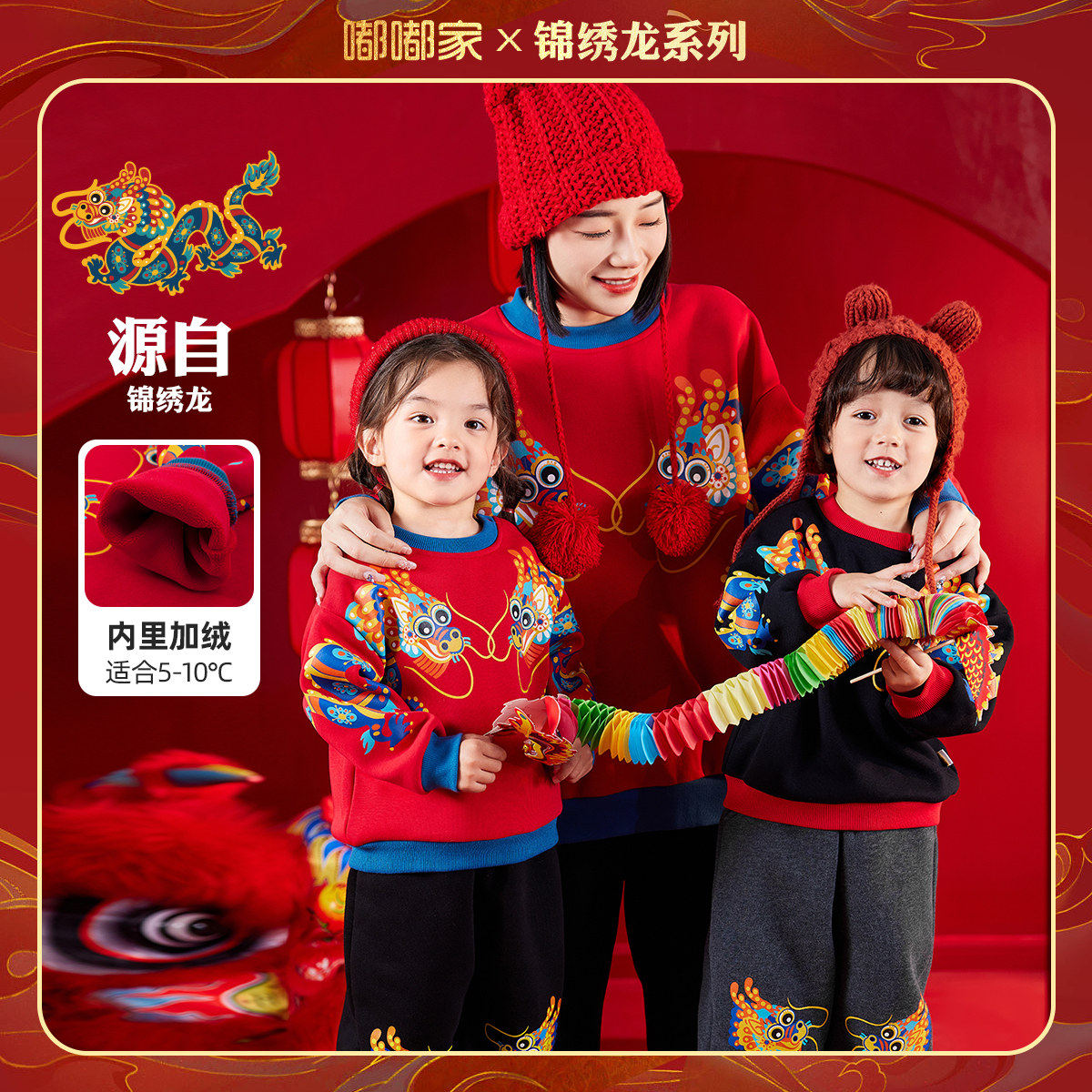 儿童加绒毛衣男童拜年服女童过年衣服冬季国风宝宝新年装红色喜庆