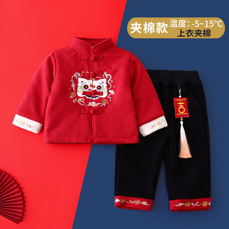 儿童过年喜庆衣服国风拜年服男童唐装汉服棉衣虎年宝宝新年装冬季