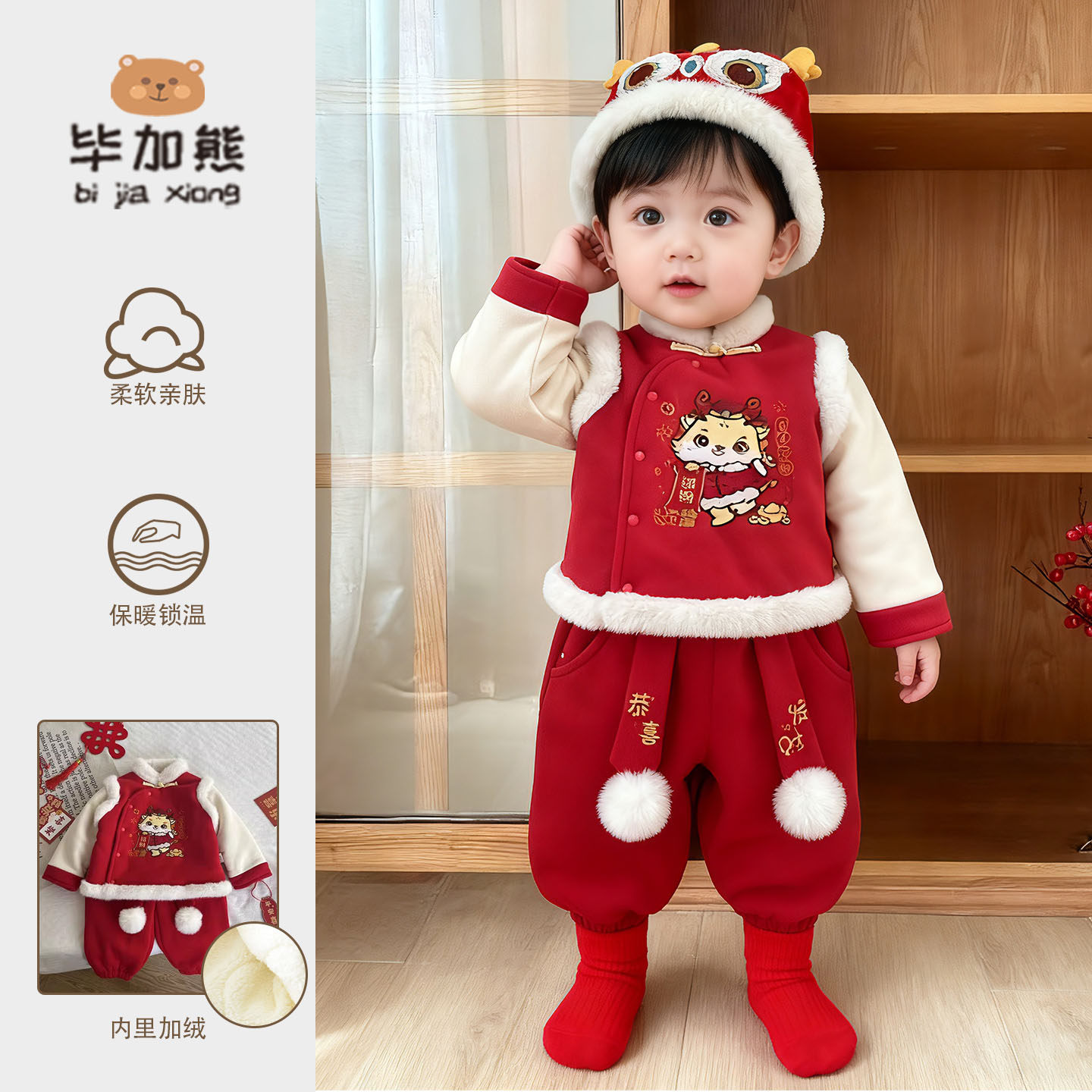 男宝宝新年装过年拜年服冬季婴儿百天衣服套装男童2一1周岁宴礼服