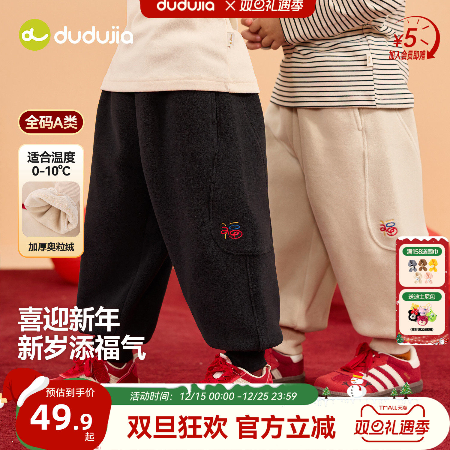 嘟嘟家儿童裤子加绒男童拜年服长裤宝宝新年装女童冬装束脚裤唐装