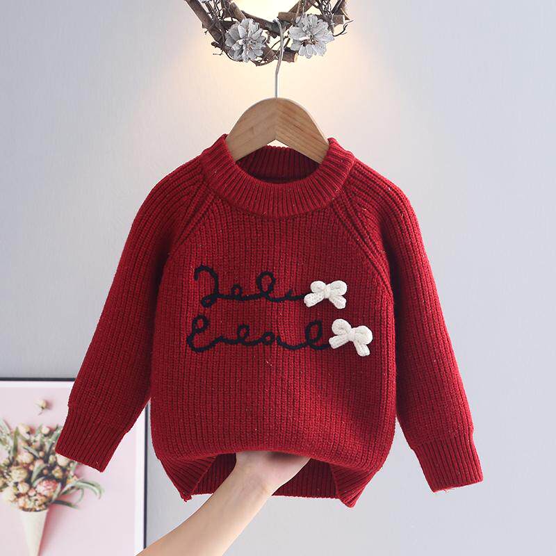 红色过年服女童毛衣针织上衣秋冬装新款小女孩打底衫女宝宝新年装
