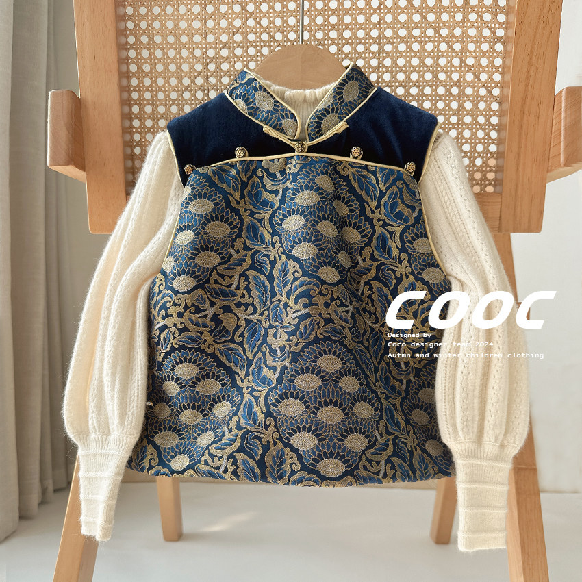 2025秋冬新款男童夹棉马甲背心唐装宝宝新年装国风兄妹拜年服