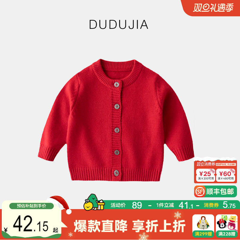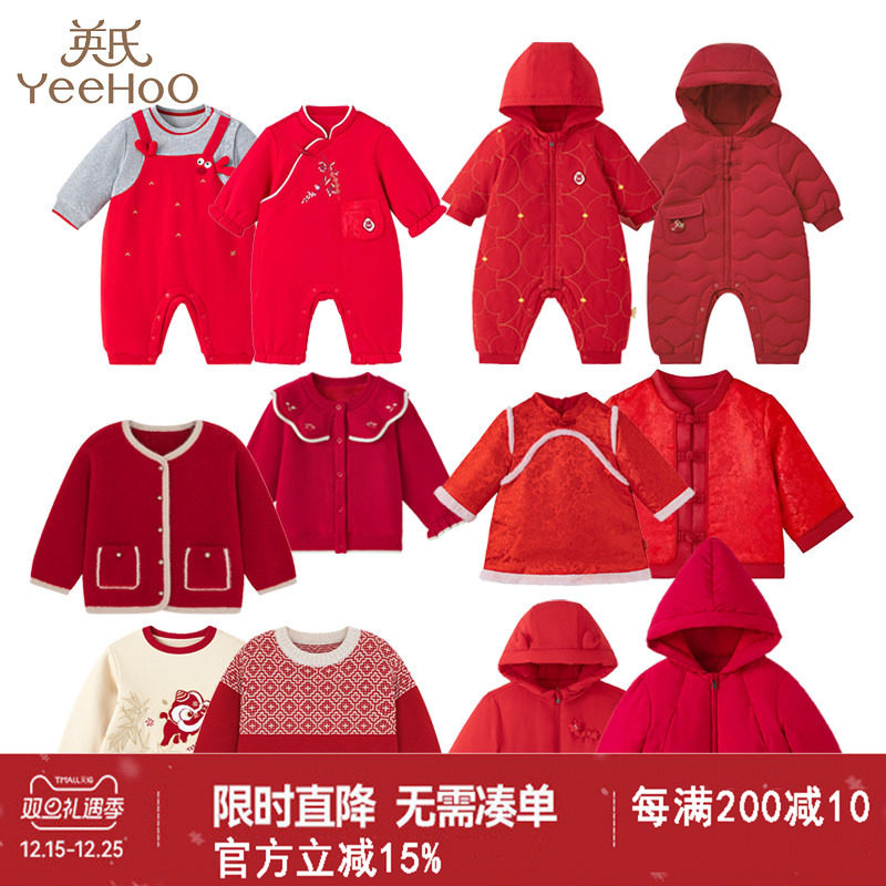英氏秋冬3折起!男女宝红色夹棉外套宝宝新年装加绒针织衫羽绒服