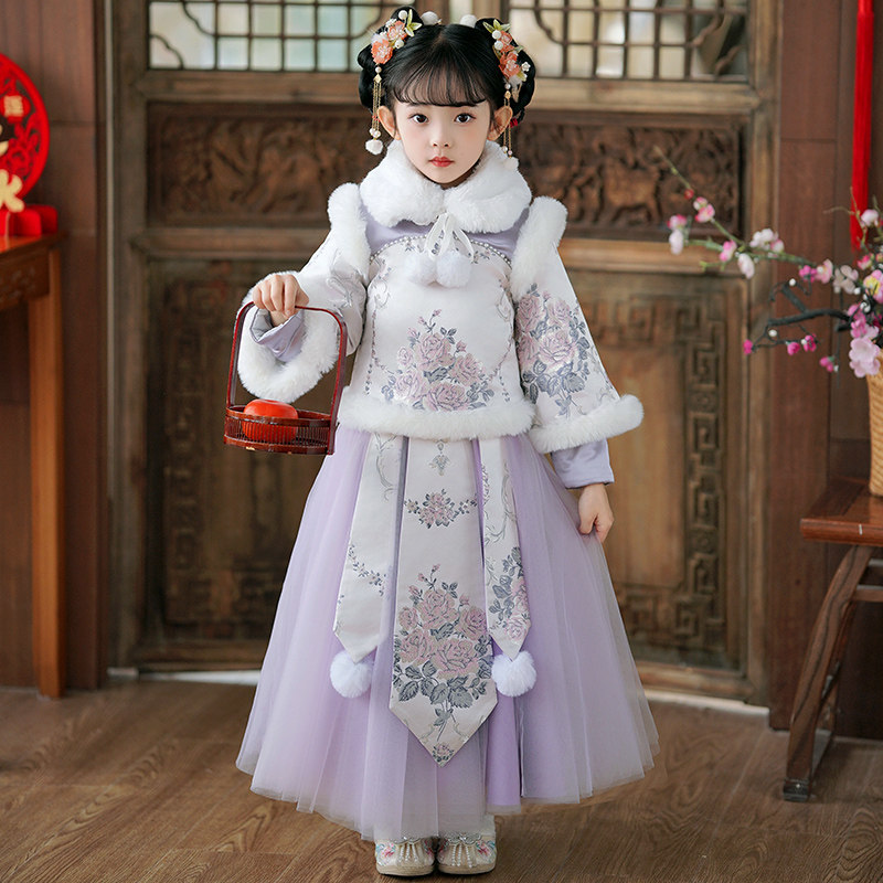 AGLFLIN女童汉服秋冬加厚唐装儿童女宝宝新年装中国风古装拜年服