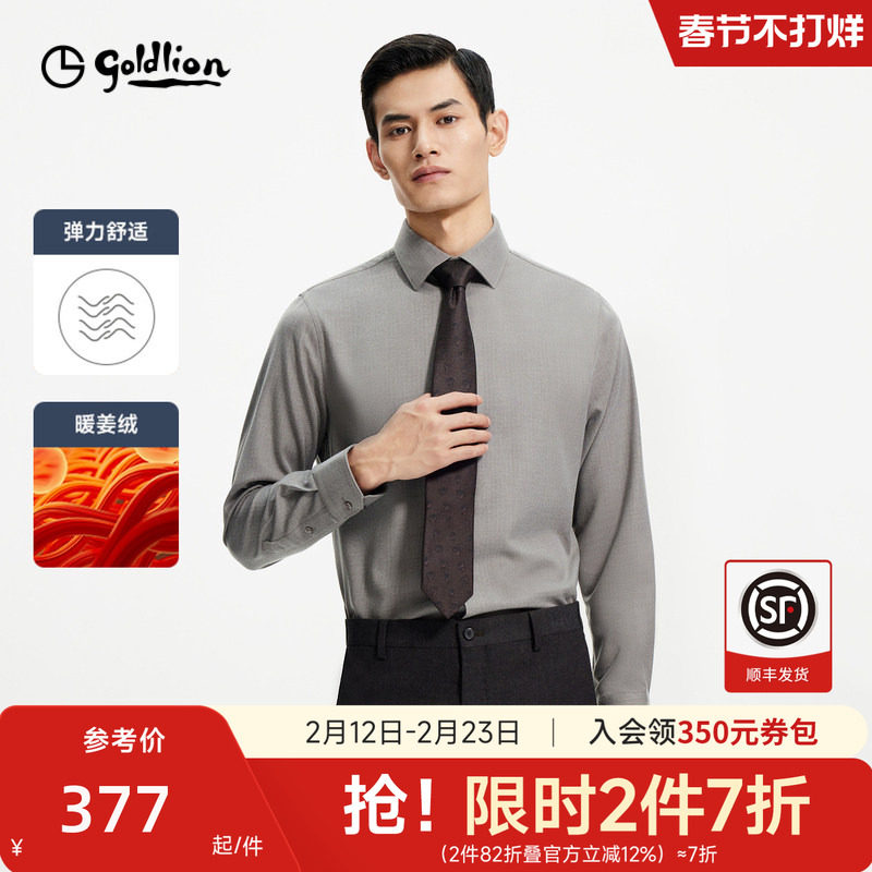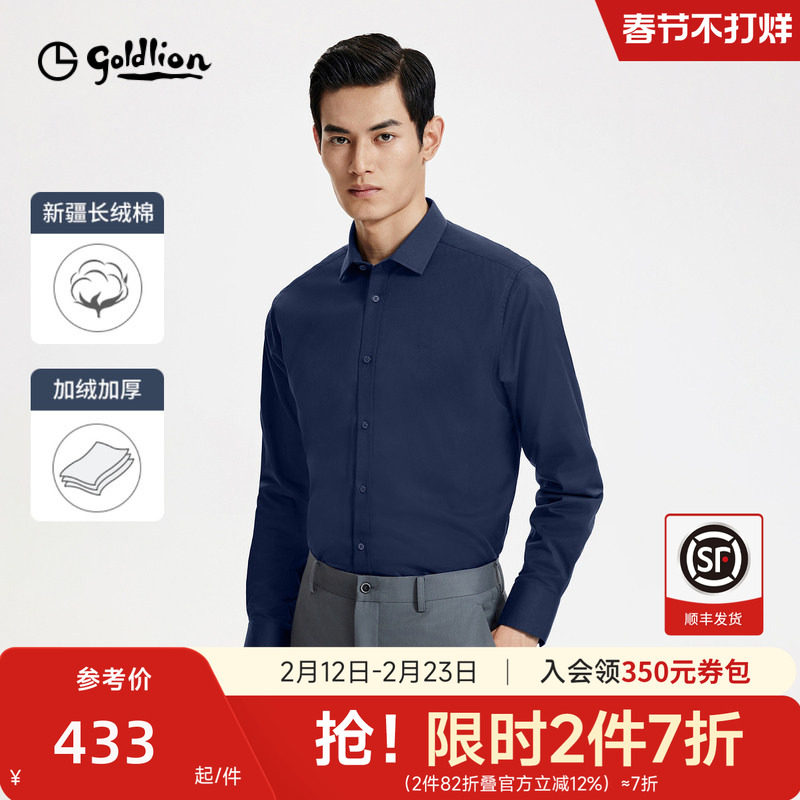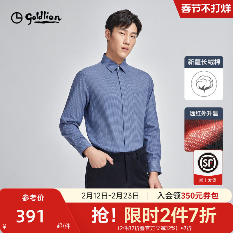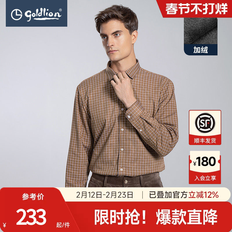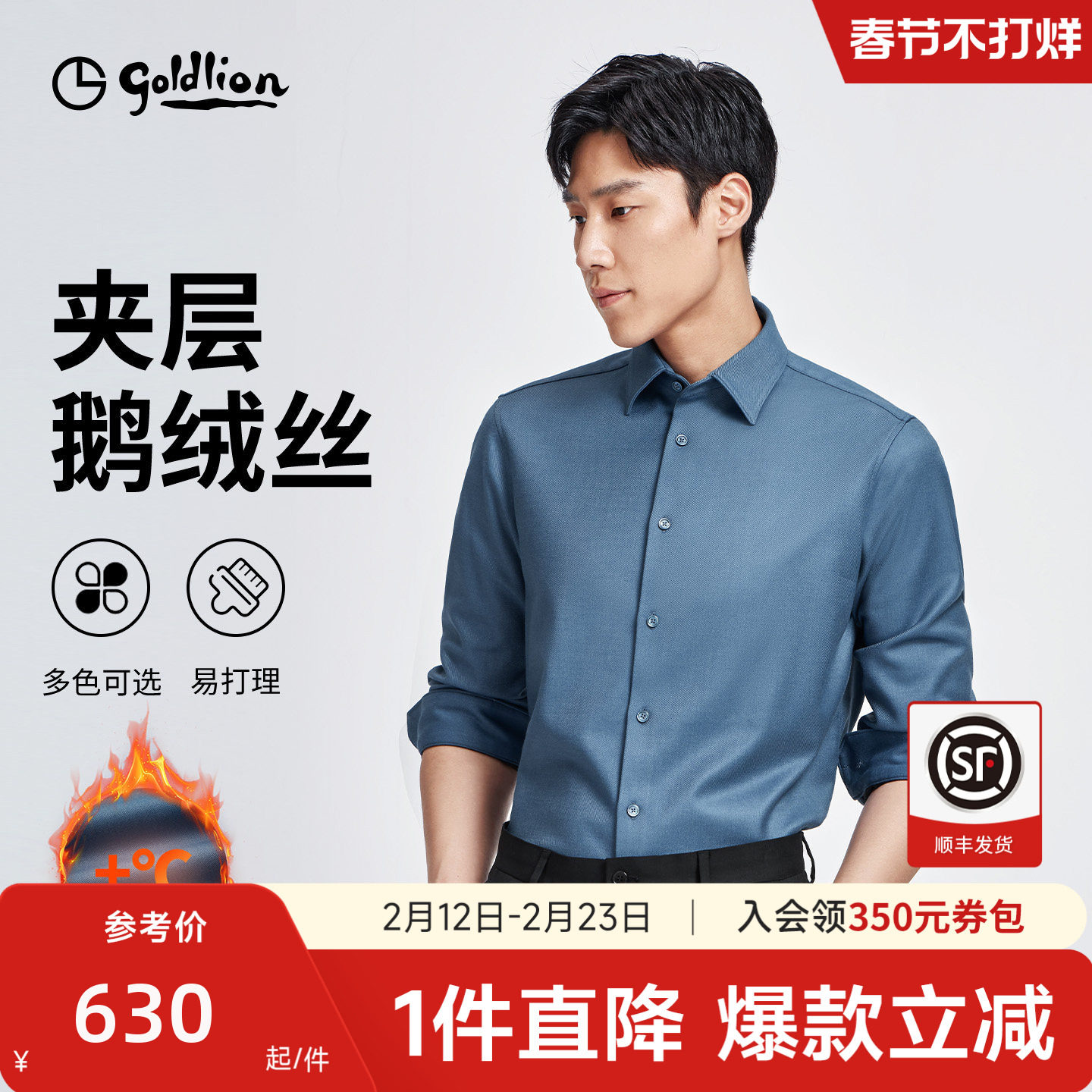 【加绒加厚】金利来秋冬新款男士长袖衬衫保暖长绒棉商务正装衬衣