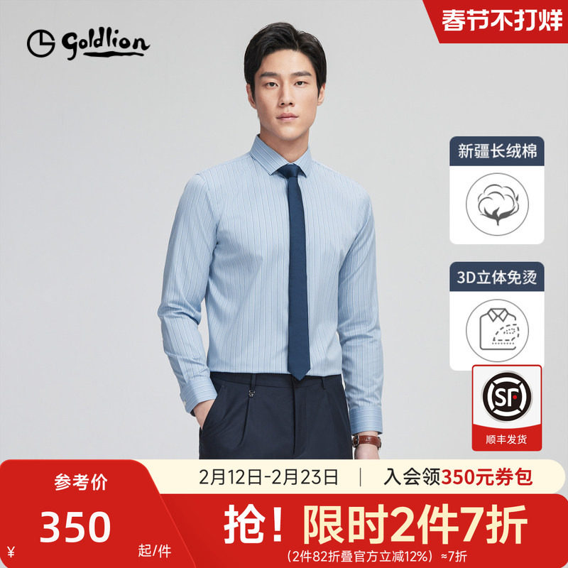 【200支3D免烫】金利来男士衬衣纯棉易打理高档商务长袖衬衫男