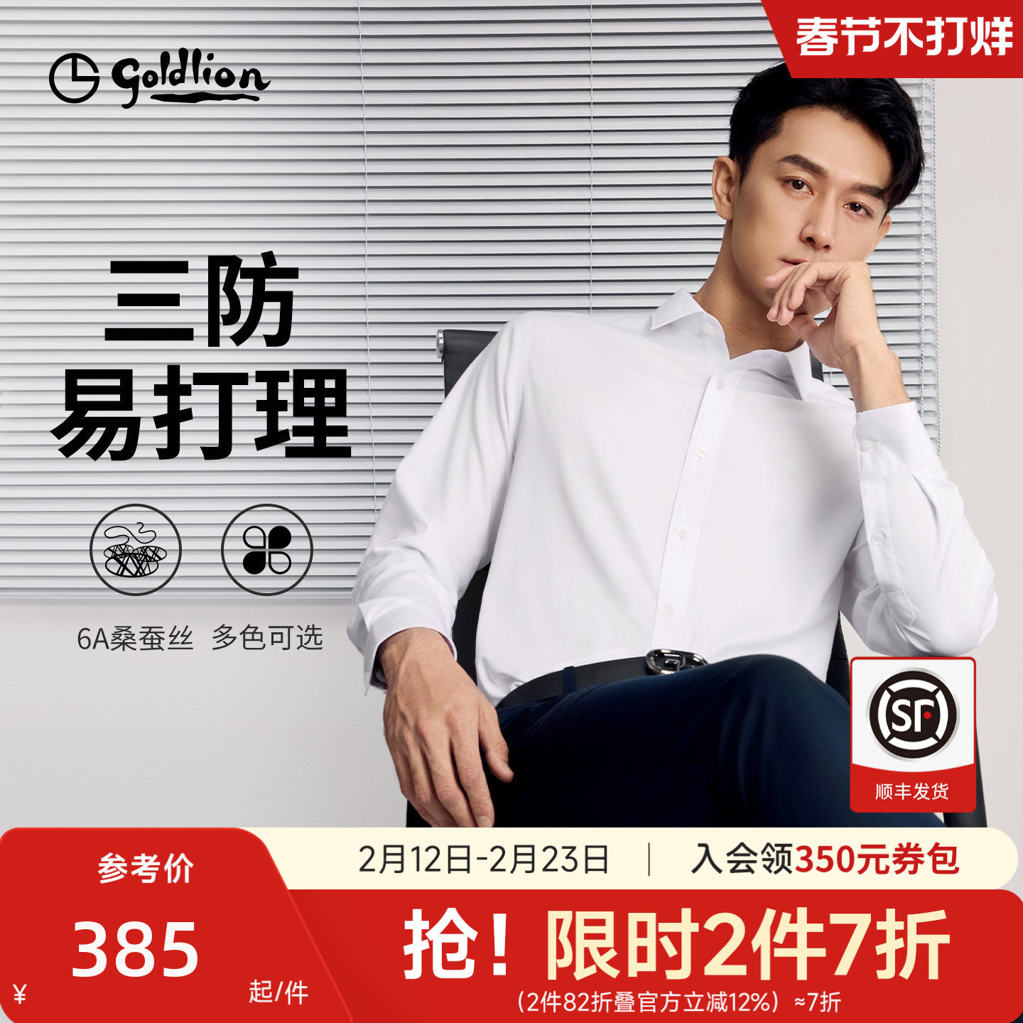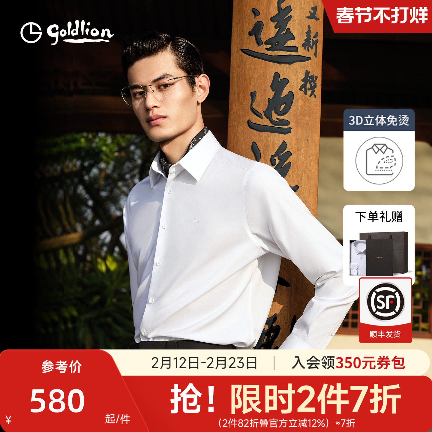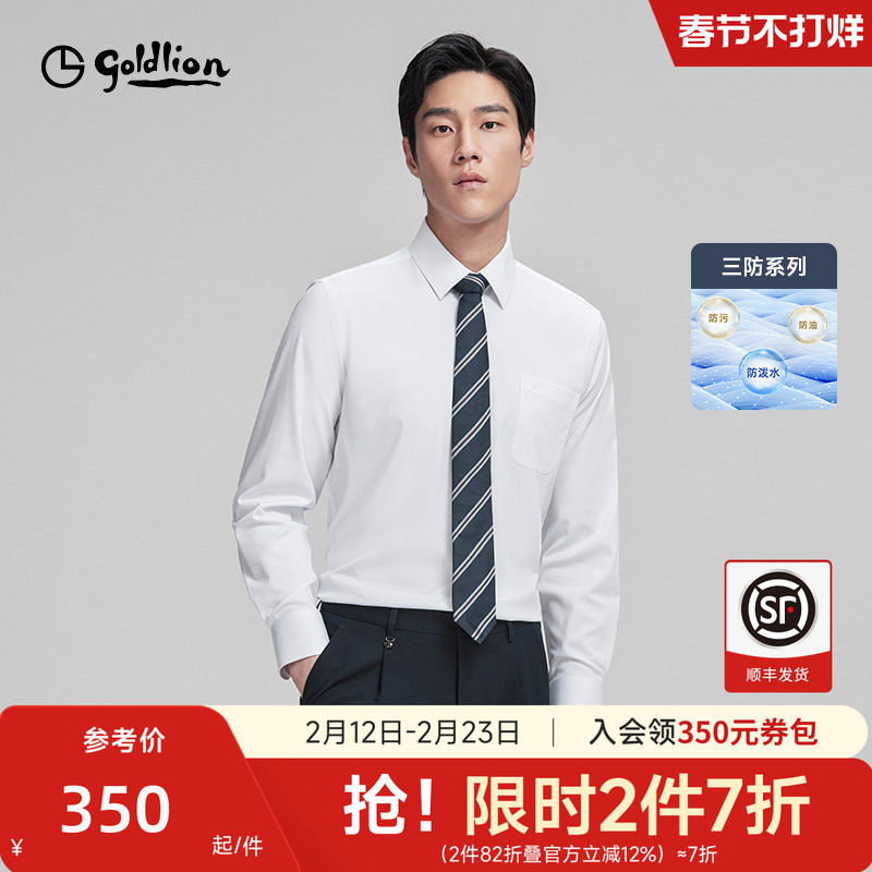【3D免烫二代】金利来新款男士衬衣纯棉易打理商务长袖白色衬衫