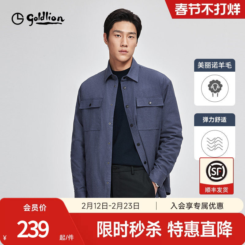 【羽绒衬衫】金利来秋冬夹层复合羽绒保暖发热衬衫商务长袖衬衣男