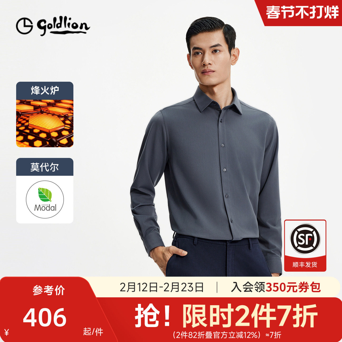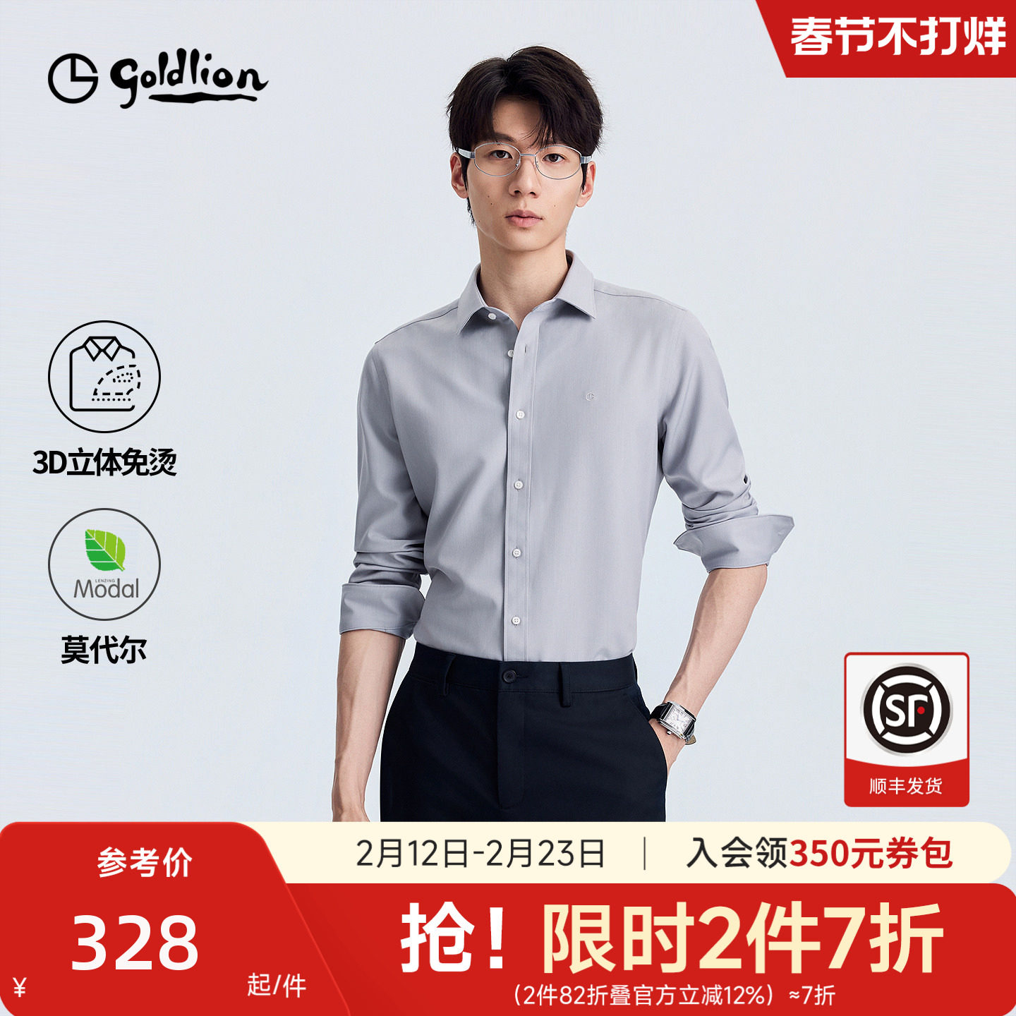 【免烫】金利来2026春夏新款男士正装衬衫莫代尔上班商务长袖衬衣