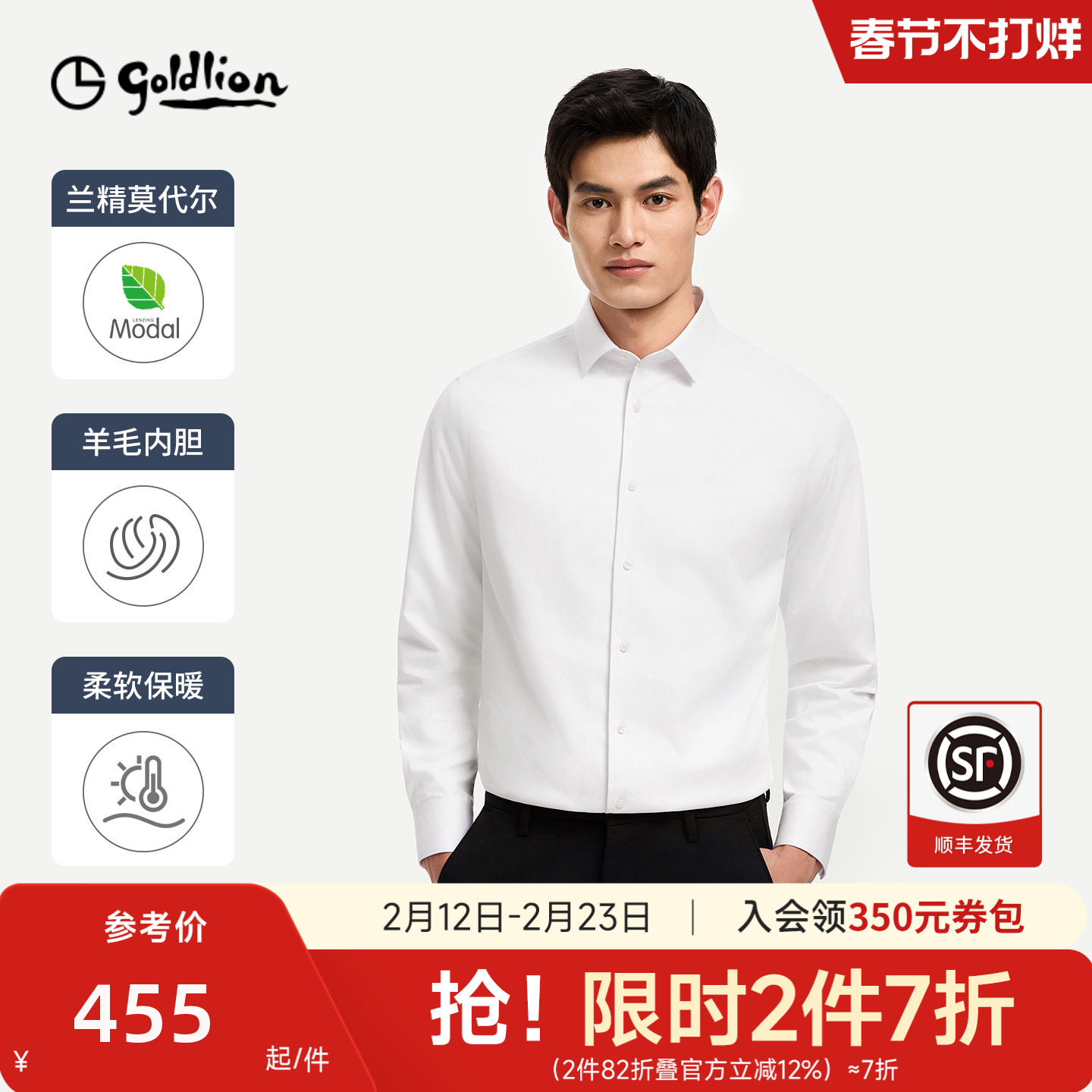 【免烫】金利来2026春夏新款男士正装白色衬衫莫代尔商务长袖衬衣